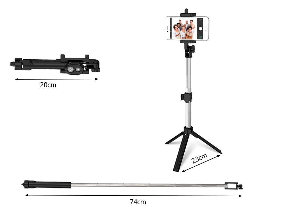 Čvrsti selfie štap i tronožac u jednom – kompatibilan sa svim modelima pametnih telefona