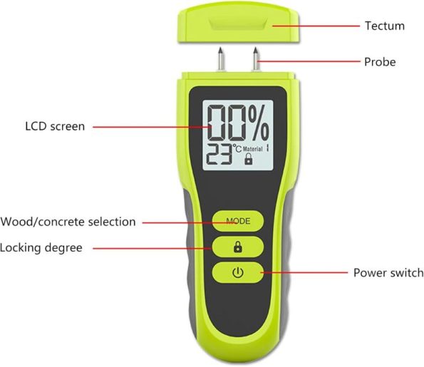 Zahvaljujući jednostavnom rukovanju i jasnom prikazu podataka, idealan je alat za stolarske radionice, gradilišta ili hobi upotrebu kod kuće. Ugrađene funkcije čine ovaj uređaj pouzdanim i praktičnim rješenjem za sve koji žele kontrolirati vlagu drva prije sušenja, obrade ili montaže. Ovaj vlagomjer omogućuje brzu procjenu kvalitete materijala i smanjuje rizik od deformacija i oštećenja povezanih s prekomjernom vlagom.
