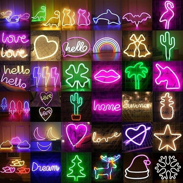 LED Dekorativne Neon Lampe – Kaktus, LOVE, Gamepad, Oblak i Duga