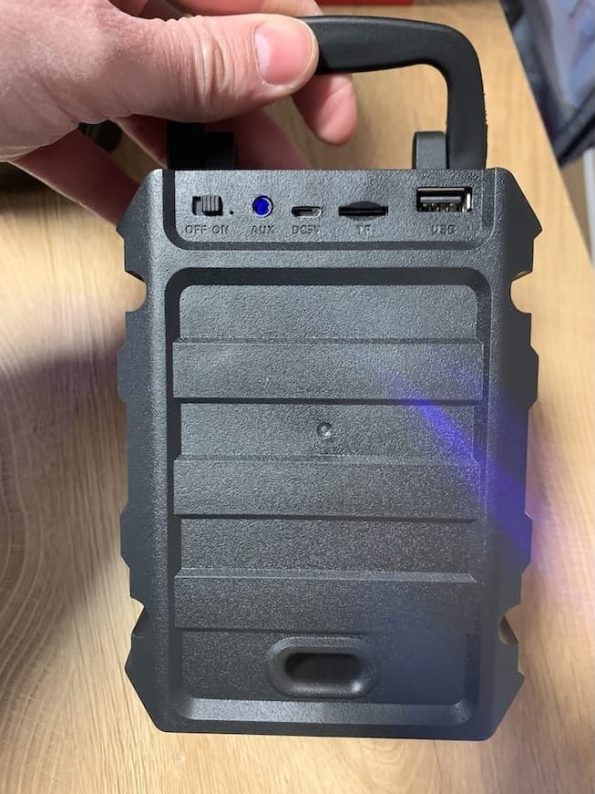 - Funkcije: Bluetooth, TWS (spoji 2 zvučnika), FM radio, mikrofon, USB, TF kartica, AUX ulaz
