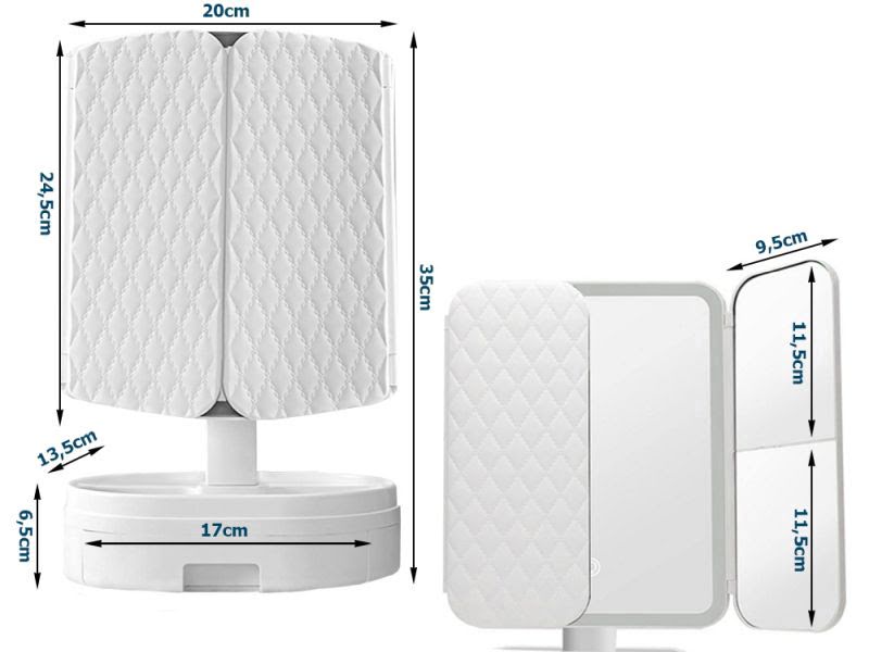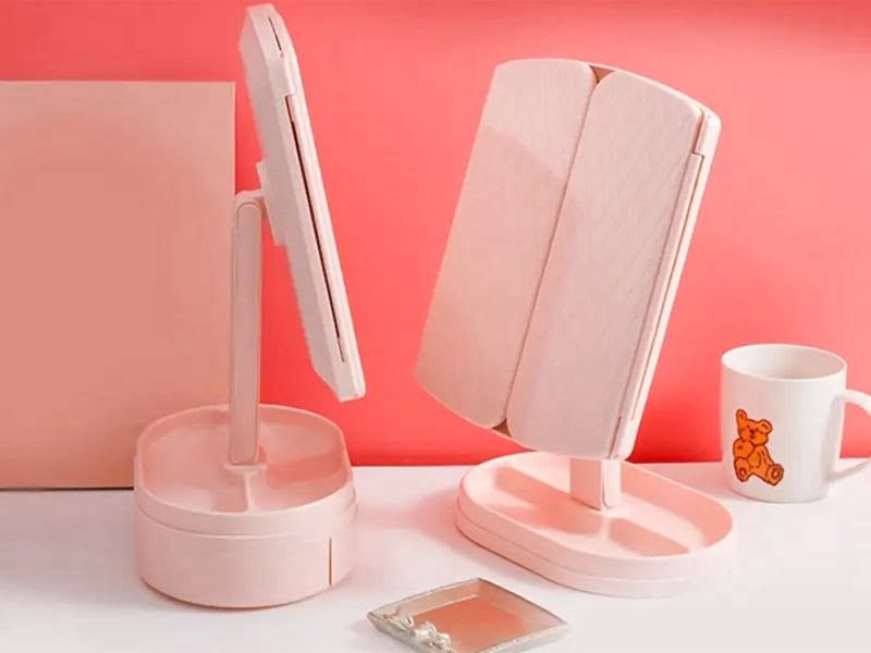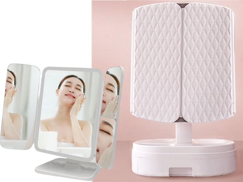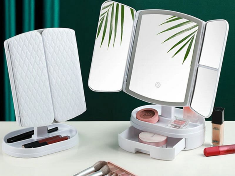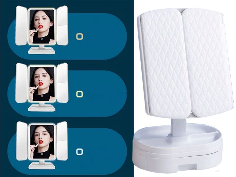 Sklopivo LED kozmetičko ogledalo s organizatorom za šminku