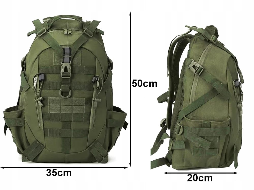 Ovi taktički ruksaci su pouzdani pratitelji svake avanture – bilo u prirodi, na planinarenju, kampiranju, biciklu ili u svakodnevnom životu. Izrađeni su od izdržljivog i vodootpornog materijala 800D OXFORD, otporni na habanje i vlagu, što ih čini idealnima čak i u zahtjevnim vremenskim uvjetima. Ruksaci kombiniraju funkcionalnost, modularnost i vojni dizajn za aktivne osobe koje cijene izdržljivost i udobnost.
